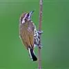 斑姬啄木鸟是鴷形目啄木鸟科姬啄木鸟属鸟类,又叫姬啄木鸟、小啄木鸟。体长9-10厘米。嘴尖而略粗壮,灰黑色;额棕色,向颈后逐渐过渡至橄榄绿色;眉纹白色,过眼纹黑褐色,其下有一白纹,…全部>>