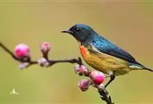 红胸啄花鸟:体重5-10克,体长60-92毫米。体形纤小。雄鸟上体呈辉亮的金属绿色;下体棕黄,胸部具一朱红色块斑,极易与其他啄花鸟区别。雌鸟上体呈橄榄绿,下体棕黄色。虹膜褐色,嘴褐黑色或角灰色,…全部>>