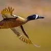 蓝翅鸭是雁形目、鸭科的鸟类。身长37-41 cm,头部灰色,眼圈、眼纹和眼先均灰白色。体羽红褐色,羽毛有白色镶边。侧翼有深蓝色翼镜标记。栖息于淡水湖畔,亦有些越冬活动于沿海滩涂盐场、水库、湖池、河流,…全部>>