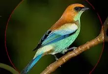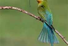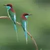 蓝喉蜂虎中型鸟类,体长26~28厘米。头顶至上背栗红色或巧克力色,过眼线黑色,腰和尾蓝色,翼蓝绿色,腰及长尾浅蓝,中央尾羽延长成针状,明显突出于外。颏喉蓝色,其余下体和两翅绿色。嘴细长而尖,黑色,…全部>>