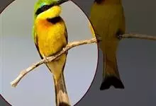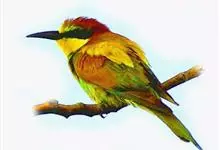 黄喉蜂虎属中型鸟类,体长23-30厘米。喉黄色,其下有一窄的黑色胸带;胸带以下的整个下体蓝绿色。前额蓝白色,具一宽的黑色贯眼纹,头顶至后颈暗栗色,尾蓝绿色,中央尾羽延长,明显突出于其他尾羽。…全部>>