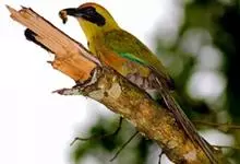 绿喉蜂虎是佛法僧目、蜂虎科的小型鸟类,共有9个亚种。身长22-25厘米,翼展29-30厘米,体重15-20克。喉绿色,额部、头顶至上背为锈红色,其余上体均为亮绿色。中央尾羽延长且端段狭细,…全部>>