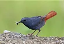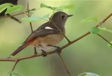 北红尾鸲是雀形目鸫亚科红尾鸲属的一种鸟类。北红尾鸲体长13—15厘米。雄鸟头顶至背石板灰色,下背和两翅黑色,具明显的白色翅斑;腰、尾上覆羽和尾橙棕色;前额基部、头侧、颈侧、颏喉和上胸黑色,…全部>>