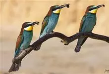 栗喉蜂虎是蜂虎科蜂虎属的鸟类。有热带鸟类羽毛艳丽的特征:喉部是栗红色的,黑色的过眼纹,翅膀和背部是绿色的,尾翼是蓝色的,飞行时翅膀下面的羽毛是橙黄色的,在阳光的照射下,它们全身闪烁着金属般的艳丽光泽,…全部>>