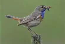 蓝点颏亦称“蓝喉歌鸲”,通称蓝靛颏儿。身体大小和麻雀相似,体长12-13厘米,体重17-18克。头部、上体主要为土褐色。眉纹白色。尾羽黑褐色,基部栗红色。颏部、喉部辉蓝色,下面有黑色横纹。下体白色。…全部>>