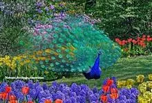 蓝孔雀,是鸡形目雉科孔雀属中的一种鸟。蓝孔雀是鸡类中的“巨人”,雄鸟和雌鸟的羽色有差,雄鸟头上具冠羽,头、颈和胸部均为蓝色,尾羽并不长,构成尾屏的尾上覆羽可达身长的2倍,平时合拢托在身后,…全部>>