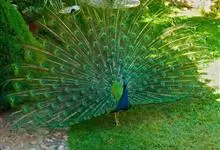绿孔雀是鸡形目雉科孔雀属鸟类,别名:孔雀、越鸟、爪哇绿孔雀。雄性绿孔雀全身呈翠绿色,并反紫铜色光。头顶有一簇直立的冠羽,尾上复羽发达的约长1米,每羽端部有一个蓝色和翠绿色镶嵌的眼状斑,…全部>>