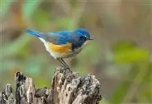 红胁蓝尾鸲俗名:蓝点冈子、蓝尾巴根子、蓝尾杰、蓝尾欧鸲。体型略小而喉白的鸲。特征为橘黄色两胁与白色腹部及臀成对比。雄鸟上体蓝色,眉纹白;亚成鸟及雌鸟褐色,尾蓝。…全部>>