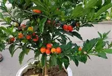 珊瑚樱是茄科茄属植物。株高达2米;植株无毛;叶窄长圆形或披针形,长1-6厘米,基部窄楔形下延,全缘或波状,侧脉4-7对;叶柄长2-5毫米;花单生,稀双生或成短总状花序与叶对生或腋外生,…全部>>