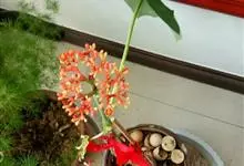 佛肚树是大戟科麻风树属的直立灌木。株高可达1.5米;茎基部或下部通常膨大呈瓶状;枝条粗短,具散生突起皮孔;叶盾状着生,近圆形或宽椭圆形,先端圆钝,基部平截或钝圆,托叶分裂呈刺状,宿存;花序顶生,…全部>>