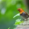日本歌鸲:体型小似麻雀,但羽毛颜色较为美丽。嘴细长,嘴须不发达;翅短圆,上体草黄褐;雄鸟喉部橙棕色,十分明显,雌鸟却转为淡橙黄色。第一枚初级飞羽短狭;尾长约为跗蹠长度的二倍;跗蹠黑褐色,形粗长而健。…全部>>