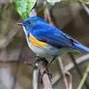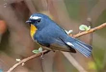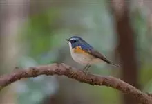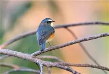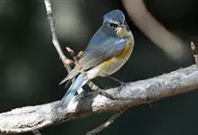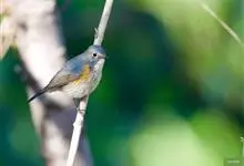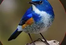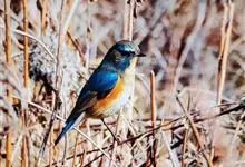 红胁蓝尾鸲俗名:蓝点冈子、蓝尾巴根子、蓝尾杰、蓝尾欧鸲。体型略小而喉白的鸲。特征为橘黄色两胁与白色腹部及臀成对比。雄鸟上体蓝色,眉纹白;亚成鸟及雌鸟褐色,尾蓝。…全部>>