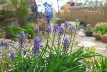 葡萄风信子,是天门冬科蓝壶花属的多年生草本优良观花地被植物,为小型花卉球根植物。根具鳞茎,卵形或近球形,株高5-10cm;基生叶半圆柱状线形;花葶不分枝,总状花序,长椭圆状柱形;花深蓝色,近球形,坛状,…全部>>
