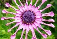蓝目菊别名非洲雏菊、大花蓝目菊。原产南非,不耐寒.忌炎热,适宜温度18℃~26℃,喜向阳环境。宜排水良好的土壤。菊科菊属多年生草本植物,…全部>>