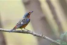 栗腹矶鸫是鸫科、矶鸫属小型鸟类,体长20-25厘米。雄鸟上体呈辉亮的钴蓝色,两翅黑褐色,喉蓝黑色,其余下体栗红色。雌鸟上体橄榄褐色,背具黑色鳞状斑,下体棕白色密杂以黑褐色横斑,黑白相衬,极为醒目,…全部>>