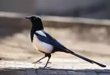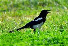 喜鹊:是鸦科、鹊属的一种鸟类。共有11个亚种。体长40-50厘米,雌雄羽色相似,头、颈、背至尾均为黑色,并自前往后分别呈现紫色、绿蓝色、绿色等光泽,双翅黑色而在翼肩有一大形白斑,尾远较翅长,呈楔形,…全部>>