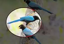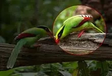蓝绿鹊:中型鸟类,共有5个亚种。体长36-38厘米。尾长,嘴、脚红色。通体羽色主要为草绿色,宽阔的黑色贯眼纹向后延伸到后颈,在绿色的头侧极为醒目。两翅栗红色,内侧飞羽具黑色次端斑和白色尖端。尾绿色,…全部>>