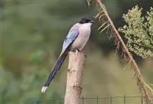 灰喜鹊:属雀形目、鸦科的中型鸟类。外形酷似喜鹊,但稍小。体长33-40厘米。嘴、脚黑色,额至后颈黑色,背灰色,两翅和尾灰蓝色,初级飞羽外翈端部白色。尾长、呈凸状具白色端斑,下体灰白色。外侧尾羽较短不…全部>>