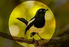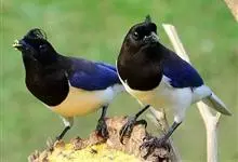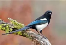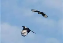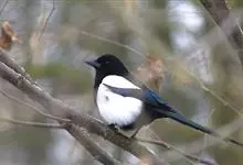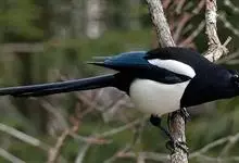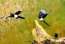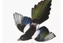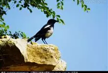 喜鹊:是鸦科、鹊属的一种鸟类。共有11个亚种。体长40-50厘米,雌雄羽色相似,头、颈、背至尾均为黑色,并自前往后分别呈现紫色、绿蓝色、绿色等光泽,双翅黑色而在翼肩有一大形白斑,尾远较翅长,呈楔形,…全部>>