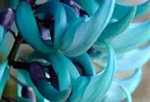 翡翠葛是豆科翡翠葛属植物,多年生常绿大型藤本,茎木质,直径可达30厘米,长可达21.3米。三出复叶,革质光亮,小叶长椭圆形,长7.6-12.7厘米,中间小叶最长。花两性,春季至初夏开花,蓝绿色,…全部>>
