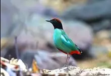 蓝翅八色鸫是雀形目八色鸫科的鸟类。体长17-20厘米,体重类约48-70克,体型圆胖,尾短,腿长,以身体具有红、绿、蓝、白、黑、黄、褐、栗等鲜艳夺目,丰富艳丽的色彩而得名,是很有观赏价值的鸟类。主要…全部>>