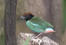 栗头八色鸫又叫锅巴雀,体长为24-26厘米,体重100-135克,是雀形目八色鸫科的鸟类。体型圆胖,尾短,腿长,常在森林底层或低植被中找食无脊椎动物。叫声简单哀婉。…全部>>