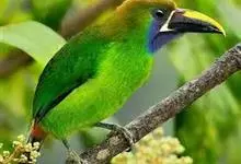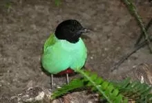 绿胸八色鸫:是雀形目八色鸫科的鸟类,共有12个亚种。体长为16-18厘米,体重65-69克。体型圆胖,尾短,腿长。头黑,上体绿色,两翼深色而具白色斑纹,头顶至后枕深褐,胸及腹部苹果绿,臀亮红。…全部>>
