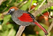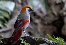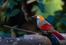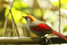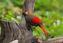 赤尾噪鹛中型鸟类,体长24~28厘米。头顶至后颈红棕色,两翅和尾鲜红色,眼先、眉纹、颊、颏和喉黑色,眼后有一灰色块斑。其余上下体羽大都暗灰或橄榄灰色。特征极明显,特别是通过鲜红色的头顶、翅和尾。…全部>>