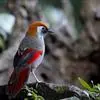 赤尾噪鹛中型鸟类,体长24~28厘米。头顶至后颈红棕色,两翅和尾鲜红色,眼先、眉纹、颊、颏和喉黑色,眼后有一灰色块斑。其余上下体羽大都暗灰或橄榄灰色。特征极明显,特别是通过鲜红色的头顶、翅和尾。…全部>>