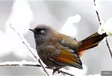 橙翅噪鹛:是噪鹛科、彩翼噪鹛属的中型鸟类,体长22-25厘米。头顶深葡萄灰色或沙褐色。上体灰橄榄褐色,外侧飞羽外翈蓝灰色、基部橙黄色,中央尾羽灰褐色,外侧尾羽外翈绿色而缘以橙黄色并具白色端斑。…全部>>
