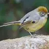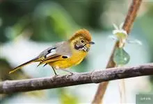 斑喉希鹛小型鸟类,体长14~17厘米。头具羽冠,前额和头顶羽冠金黄褐色,头侧灰黄色具黄色眼圈。上体灰橄榄绿色,外侧飞羽表面橘黄色、基部具黑色翼斑;内侧飞羽表面淡灰色具黑色亚端斑和白色端斑。尾羽黑色,…全部>>