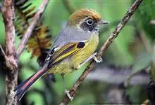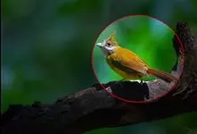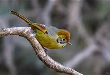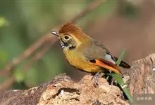斑喉希鹛小型鸟类,体长14~17厘米。头具羽冠,前额和头顶羽冠金黄褐色,头侧灰黄色具黄色眼圈。上体灰橄榄绿色,外侧飞羽表面橘黄色、基部具黑色翼斑;内侧飞羽表面淡灰色具黑色亚端斑和白色端斑。尾羽黑色,…全部>>