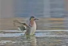 蓝翅鸭是雁形目、鸭科的鸟类。身长37-41 cm,头部灰色,眼圈、眼纹和眼先均灰白色。体羽红褐色,羽毛有白色镶边。侧翼有深蓝色翼镜标记。栖息于淡水湖畔,亦有些越冬活动于沿海滩涂盐场、水库、湖池、河流,…全部>>