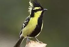 冕雀:共有4个亚种。体长20-21厘米,体重34-49克。具蓬松的黄色长型冠羽。雌鸟似雄鸟,但喉及胸深橄榄黄色,上体沾橄榄色。不会被误认的体大的黄色及黑色山雀。混群栖于原始林及次生林的林冠层,…全部>>