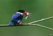蓝翡翠是佛法僧目翠鸟科翡翠属鸟类。嘴粗长似凿,基部较宽,嘴峰直;翼圆。体色以蓝色、白色及黑色为主;额、头顶、头侧和枕部黑色;后颈白色,向两侧延伸与喉胸部白色相连,…全部>>
