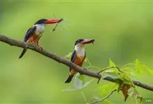 赤翡翠:是佛法僧目翠鸟科的鸟类。共有10个亚种。体长25-27厘米,体重76-77 克。头、颈、背、腰尾上覆羽、尾羽棕赤色,是翡翠亚科中分布最北的成员,虽然其主要分布区位于东南亚地区,…全部>>