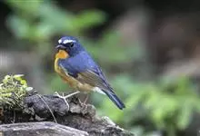 棕胸蓝姬鹟:属小型鸣禽,体长10-13厘米,体重6-10克,是一种体型很小的灰蓝及棕色鹟,雌雄羽色不同,雄鸟羽色艳丽,雌鸟羽色暗淡。雄鸟上体深蓝色,胸橙黄色,下腹灰白色。亚成鸟具褐色斑驳。…全部>>