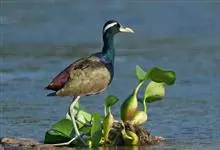 铜翅水雉雉鸻科铜翅水雉属的一种物种,是小型涉禽,体长28-31厘米。头颈、下体黑色,具金属色辉。从眼到颈有白色纵纹,背、内侧初级一飞羽橄榄铜绿色,尾下覆羽栗色。跗蹠的前后均有盾状鳞,趾、爪均甚长,…全部>>