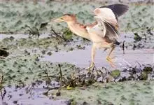 黄苇鳽是鹈形目鹭科苇鳽属鸟类。成鸟顶冠黑色;上体淡黄褐色,下体黄色,下颈基部和上胸具黑褐色块斑;黑色飞羽与黄白色覆羽成强烈对比;虹膜金黄色;眼先裸露呈黄绿色;喙峰黑褐色,…全部>>