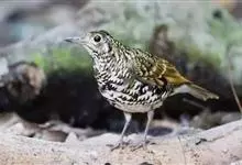 宝兴歌鸫,是鹟科、鸫属的鸟类。宝兴歌鸫为中型鸟类,体长20-24厘米。上体橄榄褐色,眉纹棕白色,耳羽淡皮黄色具黑色端斑,在耳区形成显著的黑色块斑。下体白色,密布圆形黑色斑点。宝兴歌鸫是中国的特有物种,…全部>>