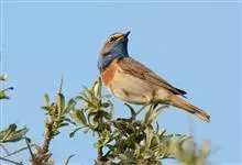 蓝点颏亦称“蓝喉歌鸲”,通称蓝靛颏儿。身体大小和麻雀相似,体长12-13厘米,体重17-18克。头部、上体主要为土褐色。眉纹白色。尾羽黑褐色,基部栗红色。颏部、喉部辉蓝色,下面有黑色横纹。下体白色。…全部>>