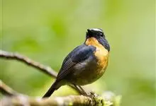 棕胸蓝姬鹟:属小型鸣禽,体长10-13厘米,体重6-10克,是一种体型很小的灰蓝及棕色鹟,雌雄羽色不同,雄鸟羽色艳丽,雌鸟羽色暗淡。雄鸟上体深蓝色,胸橙黄色,下腹灰白色。亚成鸟具褐色斑驳。…全部>>