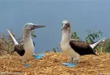蓝脚鲣鸟,是一种大型的热带海鸟。平均身长80厘米,体重约1.5千克。雌性比雄性稍大些。最引人注目的是它们长着一对蓝色的大脚。嘴粗壮,长直而尖,近似圆锥形,上下嘴缘均呈锯齿状,喉囊发达,有贮存作用。翅…全部>>