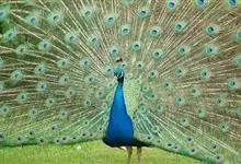 绿孔雀是鸡形目雉科孔雀属鸟类,别名:孔雀、越鸟、爪哇绿孔雀。雄性绿孔雀全身呈翠绿色,并反紫铜色光。头顶有一簇直立的冠羽,尾上复羽发达的约长1米,每羽端部有一个蓝色和翠绿色镶嵌的眼状斑,…全部>>