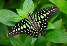 青带凤蝶Graphium sarpedon ,又名青凤蝶,是最普遍的中型凤蝶,飞行速度很快。青带凤蝶的翅膀中央有许多浅蓝色的斑点,很整齐地排列成一条直线。这些斑点由上而下逐渐变大,就像一条青色的带子。全部>>