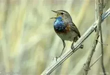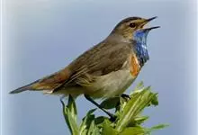 蓝点颏亦称“蓝喉歌鸲”,通称蓝靛颏儿。身体大小和麻雀相似,体长12-13厘米,体重17-18克。头部、上体主要为土褐色。眉纹白色。尾羽黑褐色,基部栗红色。颏部、喉部辉蓝色,下面有黑色横纹。下体白色。…全部>>