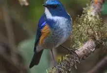 红胁蓝尾鸲俗名:蓝点冈子、蓝尾巴根子、蓝尾杰、蓝尾欧鸲。体型略小而喉白的鸲。特征为橘黄色两胁与白色腹部及臀成对比。雄鸟上体蓝色,眉纹白;亚成鸟及雌鸟褐色,尾蓝。…全部>>