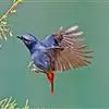 蓝大翅鸲是鹟科、大翅鸲属小型鸟类,体长19-21厘米。两翅尖长。雄鸟通体鲜紫蓝色具金属光泽。两翅和尾黑色。雌鸟上体灰褐色,头、颈、翕具棕白色纵纹,翅上有白色翅斑。虹膜暗褐色,嘴、脚黑色。…全部>>