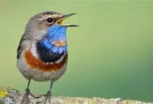 蓝点颏亦称“蓝喉歌鸲”,通称蓝靛颏儿。身体大小和麻雀相似,体长12-13厘米,体重17-18克。头部、上体主要为土褐色。眉纹白色。尾羽黑褐色,基部栗红色。颏部、喉部辉蓝色,下面有黑色横纹。下体白色。…全部>>