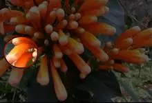 炮仗藤 Miers)紫葳科炮仗藤属藤本植物。小枝顶端有丝状卷须;叶对生,卵形;花萼钟状,橙红色,长椭圆形,花丝丝状,花药叉开;果瓣为革质,舟状。花期1-6月。初夏红橙色的花朵累累成串,状如鞭炮,…全部>>